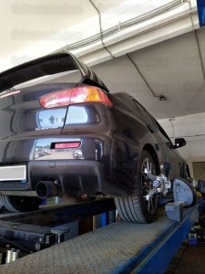 - В случае установки на спортивный автомобиль элементов кастомной подвески (регулируемых рычагов, амортизационных стоек и прочего) и необходимости установки углов подвески в соответствии с параметрами, желаемыми клиентом (отличными от базовых в соответствии с требованиями производителя автомобиля) – регулировка и настройка подвески также выполняются нашими специалистами, но тарификация такой работы будет почасовой по логическим причинам.